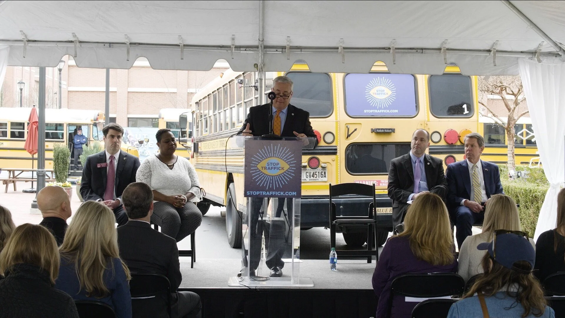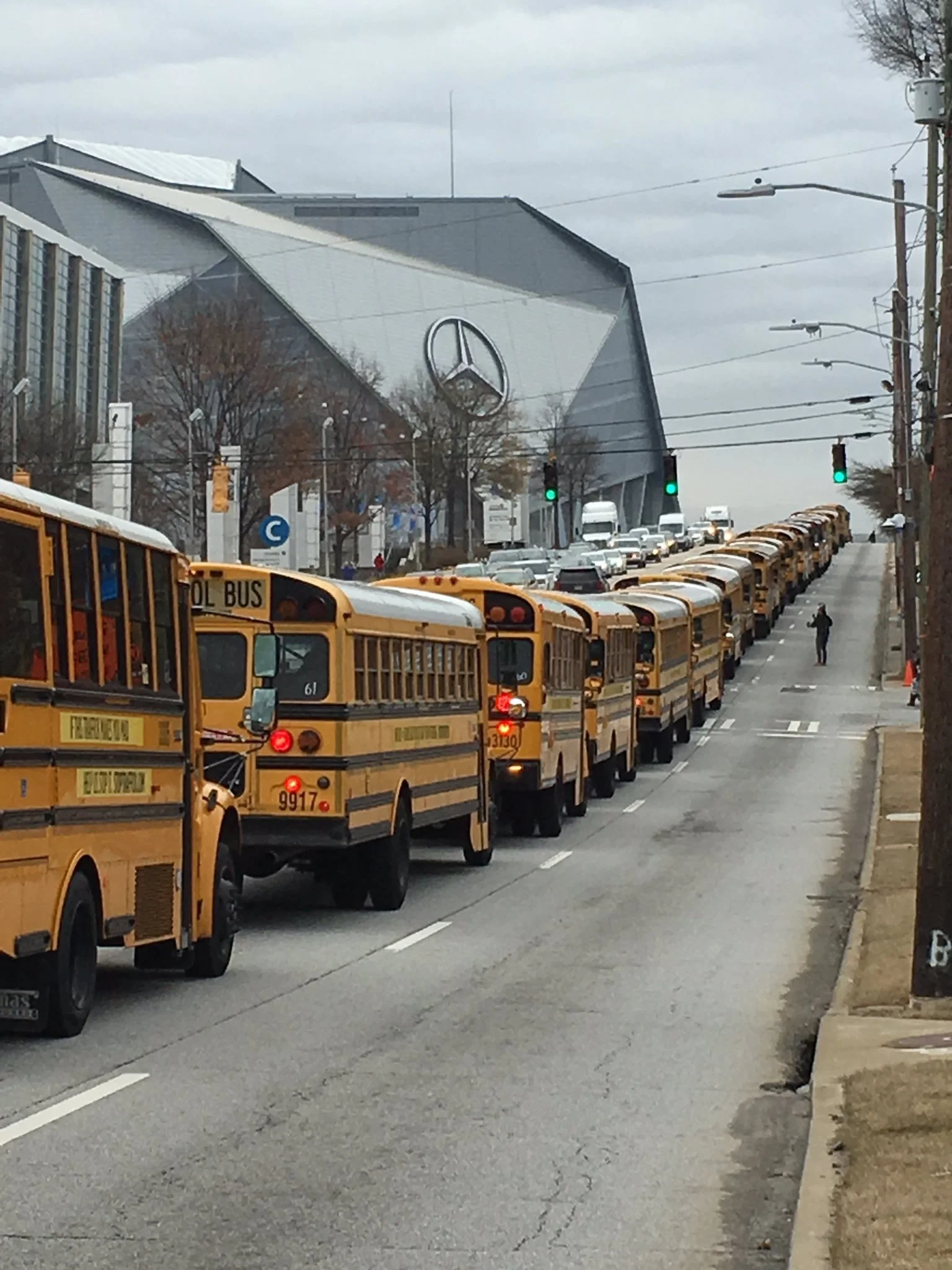 We started with a press conference in Atlantic Station, featuring survivors and various Georgia leaders. We then drove a caravan of 72 school buses through midtown Atlanta and ended at the Mercedes Benz Stadium.